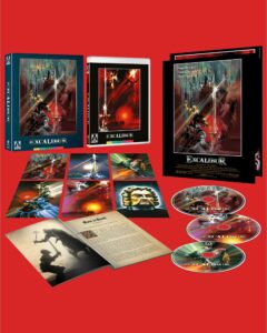 John Boorman’s career is alternately filled with flops like “Exorcist II” and classics like “Deliverance,” but he really hit a career peak with EXCALIBUR (141 mins., 1981, R; Arrow), his fanciful 1981 retelling of the Arthurian legend, adapted by Rospo Pallenberg from Malory’s “Le Morte Darthur” with Boorman collaborating on the screenplay. Though one of Boorman’s biggest box-office hits, the movie has sadly never received a proper home video remaster until now, with Arrow’s lavish 4K UHD Limited Edition htting retail next week, enhancing the gorgeous cinematography of Alex Thomson and restoring Boorman’s film to a degree it’s like watching it outside a theater for the first time.